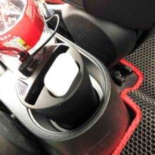 Each charger cup comes with a car adapter port, so you can just plug it into your car and have power.