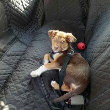 This car seat cover works great! Now I don’t have to worry about our puppy ruining our leather car seats.