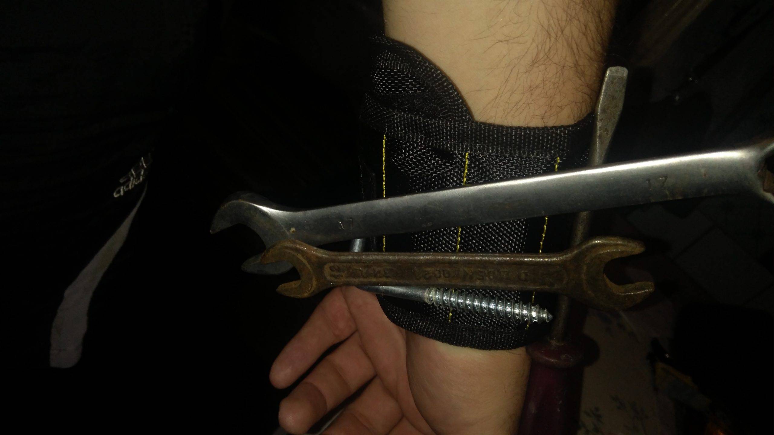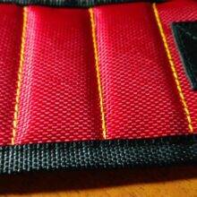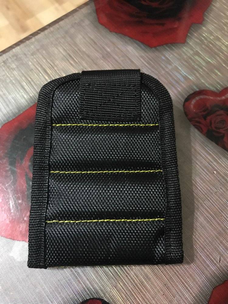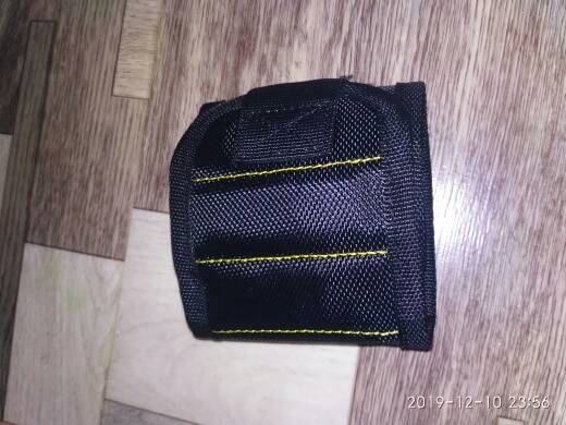 Wonderful wristband. The quality is excellent, well holds metal scissors, knives, all sorts of screwdrivers. Now you do not have to keep anything in your teeth.