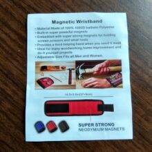 The magnets are pretty strong and can hold a bunch of screw and have little pockets for other items. Also, the package came with two wristbands, so you can optimize both hands and be extremely productive, this is a great products for a working set of hands.