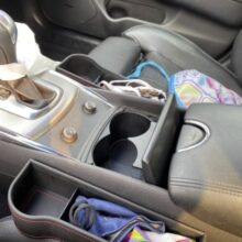 This is a great solution if you ever find yourself not having enough space to place items. However, make sure you look at your front seats and make sure your emergency brake isn’t on the side you would want the car gap to fit. If you have an emergency brake right next to your seat it won’t fit correctly. Overall, it’s a great product especially the bag hooks I use it to hang my umbrella and my purse.