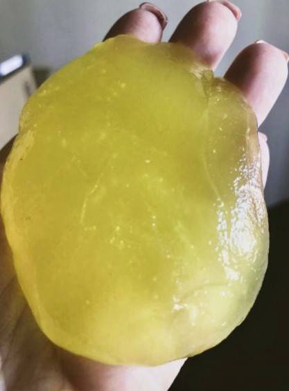 I hated to write a review because this stuff really, really works but it feels disgusting. The best I can describe it is a combination of jello and snot. I managed to take it out of the jar and place it on my keyboard and it began to immediately melt in between the keys grabbing all the dirt and dust. To get it all off I turned the keyboard upside down and let it ooze off and fall on my desk. I scraped it up and put it back into the jar and then set about rubbing my hands to get yellow crumbs off of my hands and fingers. Yuck. It is an outstanding product as my keyboard is spotless and clean. I would recommend it... if you can stand the texture on your hands.