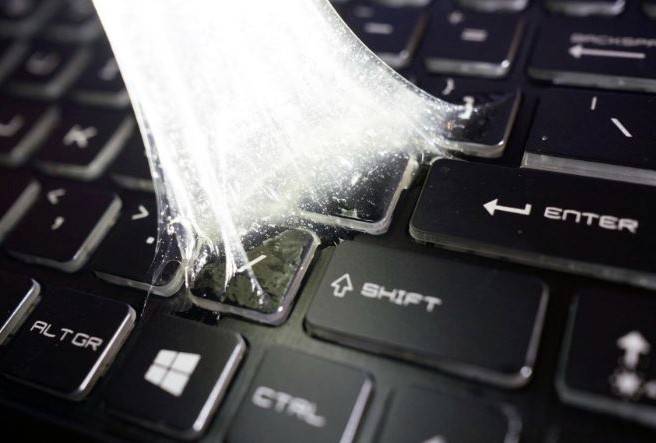 This stuff really works! You just smoosh it onto the keyboard, or whatever, and pull it off. Boom! Done!